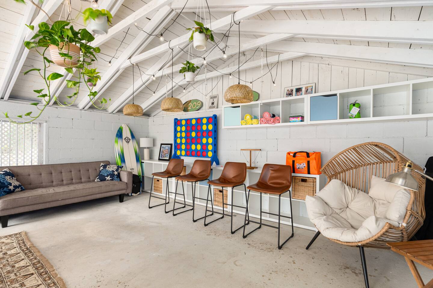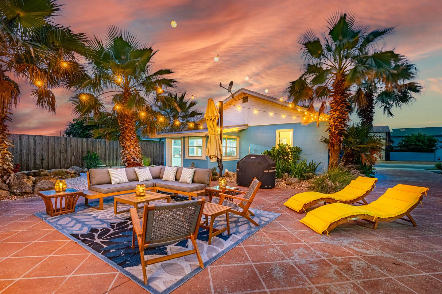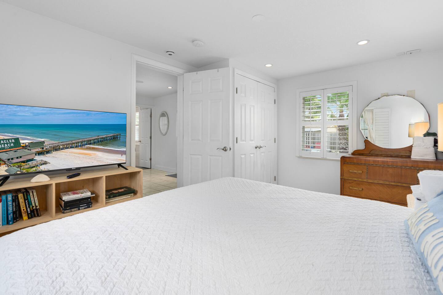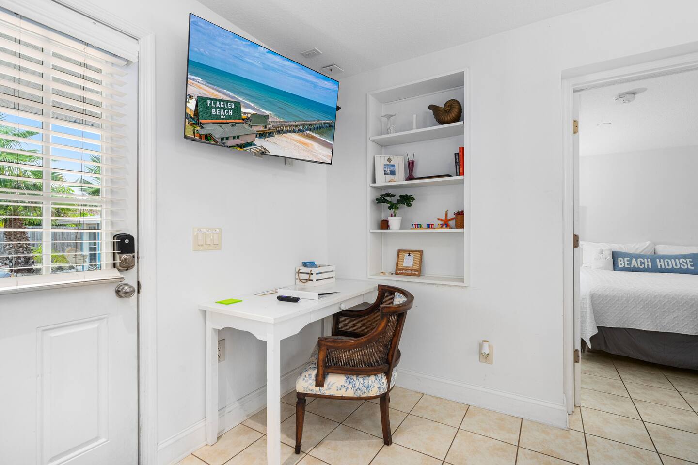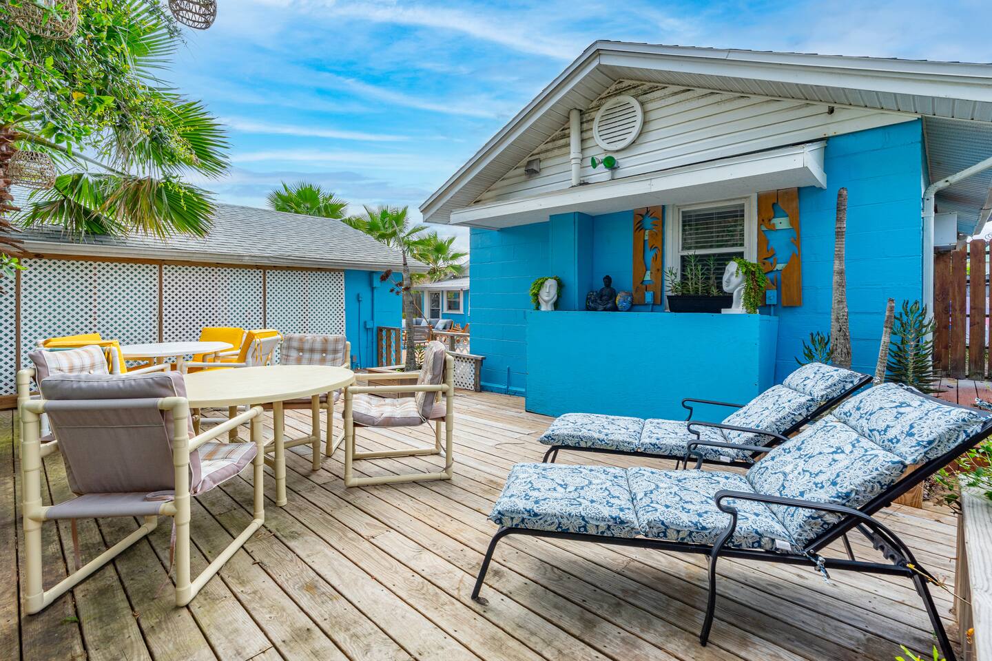 Cozy 1-bedroom bungalow just 2 minutes from Flagler Beach! Perfect for couples, solo travelers, or small families, with a king bed, queen sleeper sofa, kitchenette, and walk-in shower. Pet-friendly and work-ready with a desk + TV. Shared spaces include a tropical courtyard with grill, shaded deck, and a garage lounge with AC, big table, games, TV, and stocked beach gear. Coastal comfort made easy!